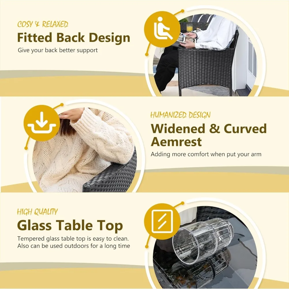 - Construcción robusta y estable: el marco exterior está hecho de ratán PE resistente a todo tipo de clima y resistente a los químicos, lo que ayuda a disminuir la decoloración y aumentar la durabilidad. El acero con recubrimiento en polvo puede evitar que se oxide mientras aumenta la estabilidad. Cada asiento está diseñado para soportar 335 libras y la mesa auxiliar puede soportar 65 libras.