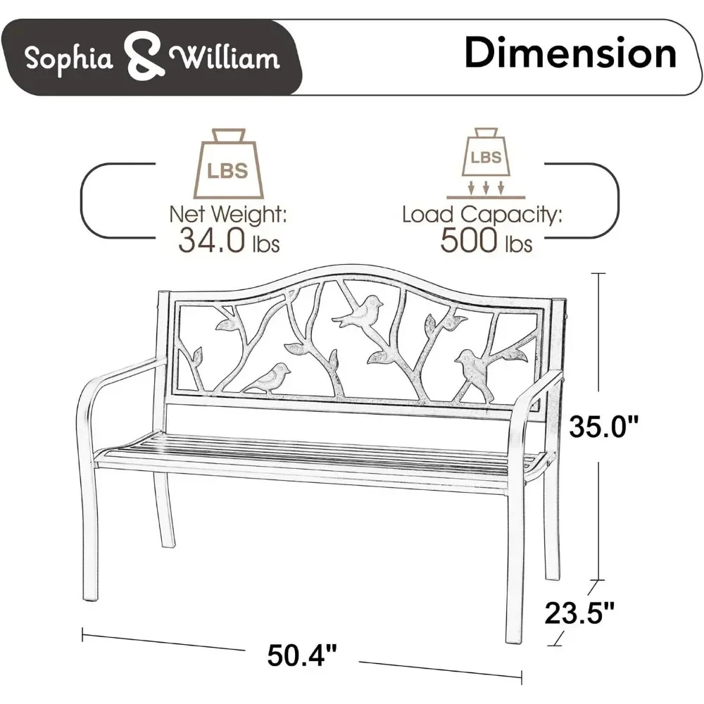Material: The outdoor metal bench is made of 100% high quality steel with special powder coating. It is durable and can last longer