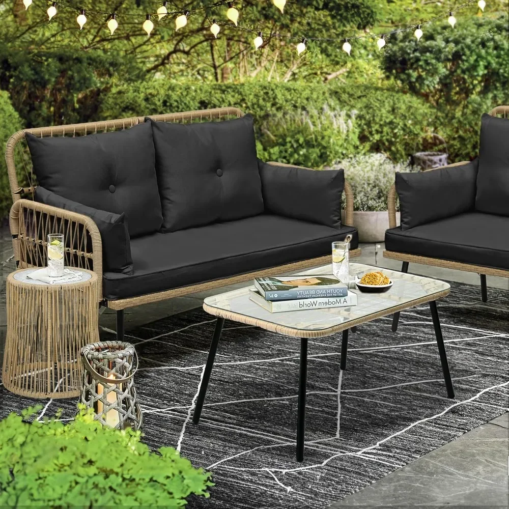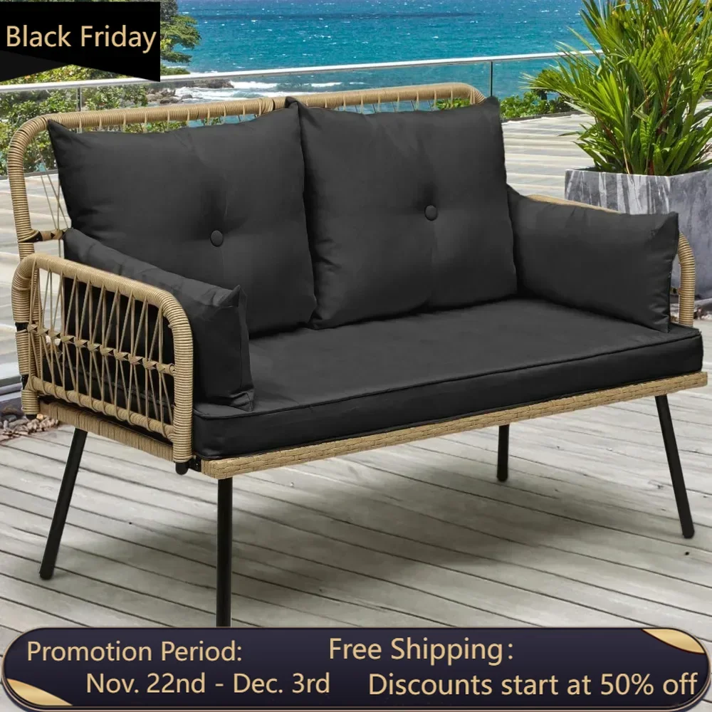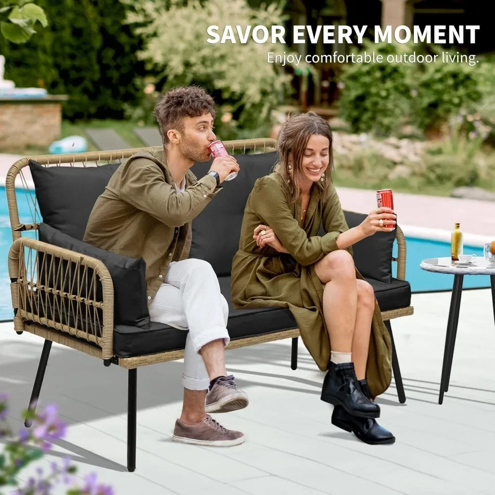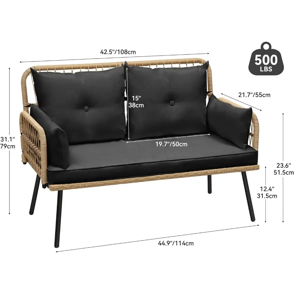 - Comfortable Seat: Looking to experience outdoor leisure in style and comfort? This patio loveseat fits the bill; Ample seat space with thick cushions allows cozy family time; Cushion cover is detachable for easy maintenance
