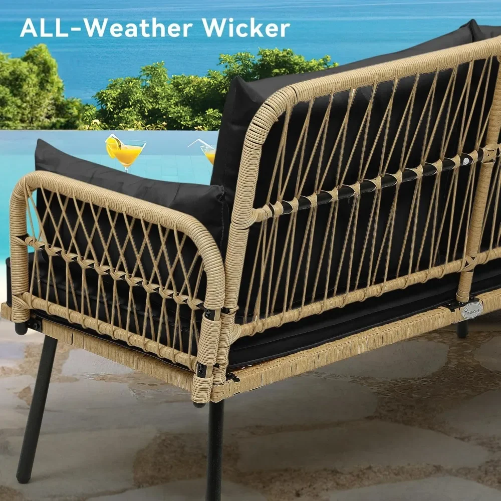 - Sturdy & Durable: High-end handwoven rattan is braced with a solid steel frame for weather resistance and enduring durability; Wide seat space, comfy cushions, and a detachable waterproof cover combine to bestow deluxe comfort & easy maintenance