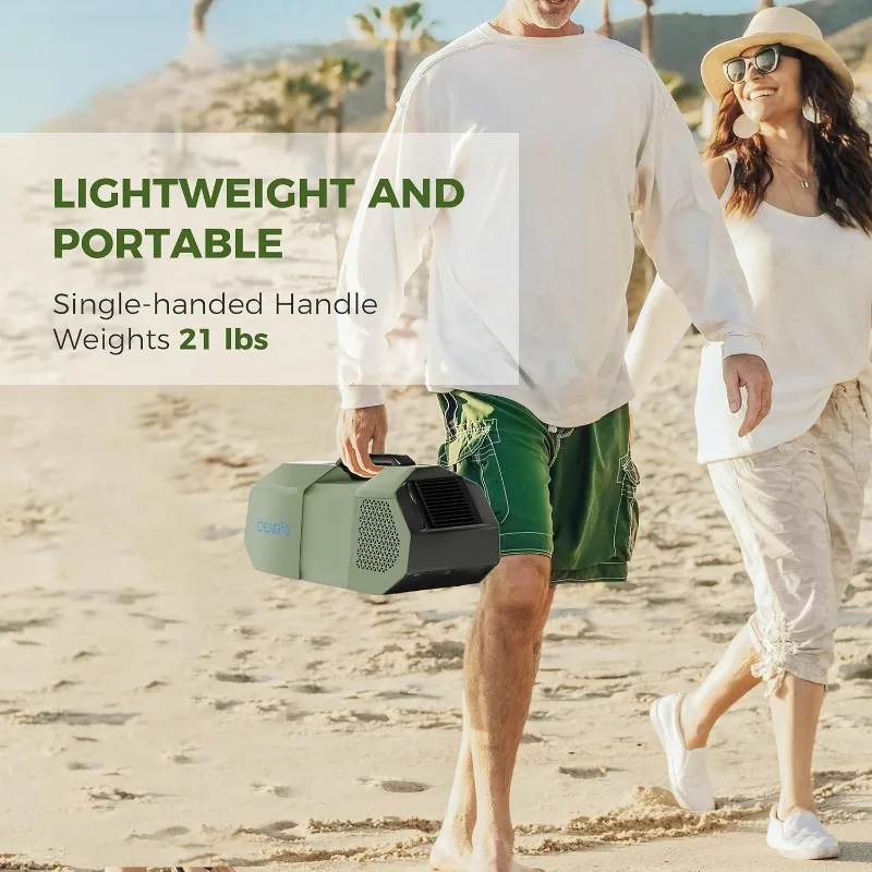 - Compact and Portable: With dimensions of 20x10x10 inches and a single-hand handle, our outdoor air conditioner is tailor-made for outdoor activities like camping and fishing.