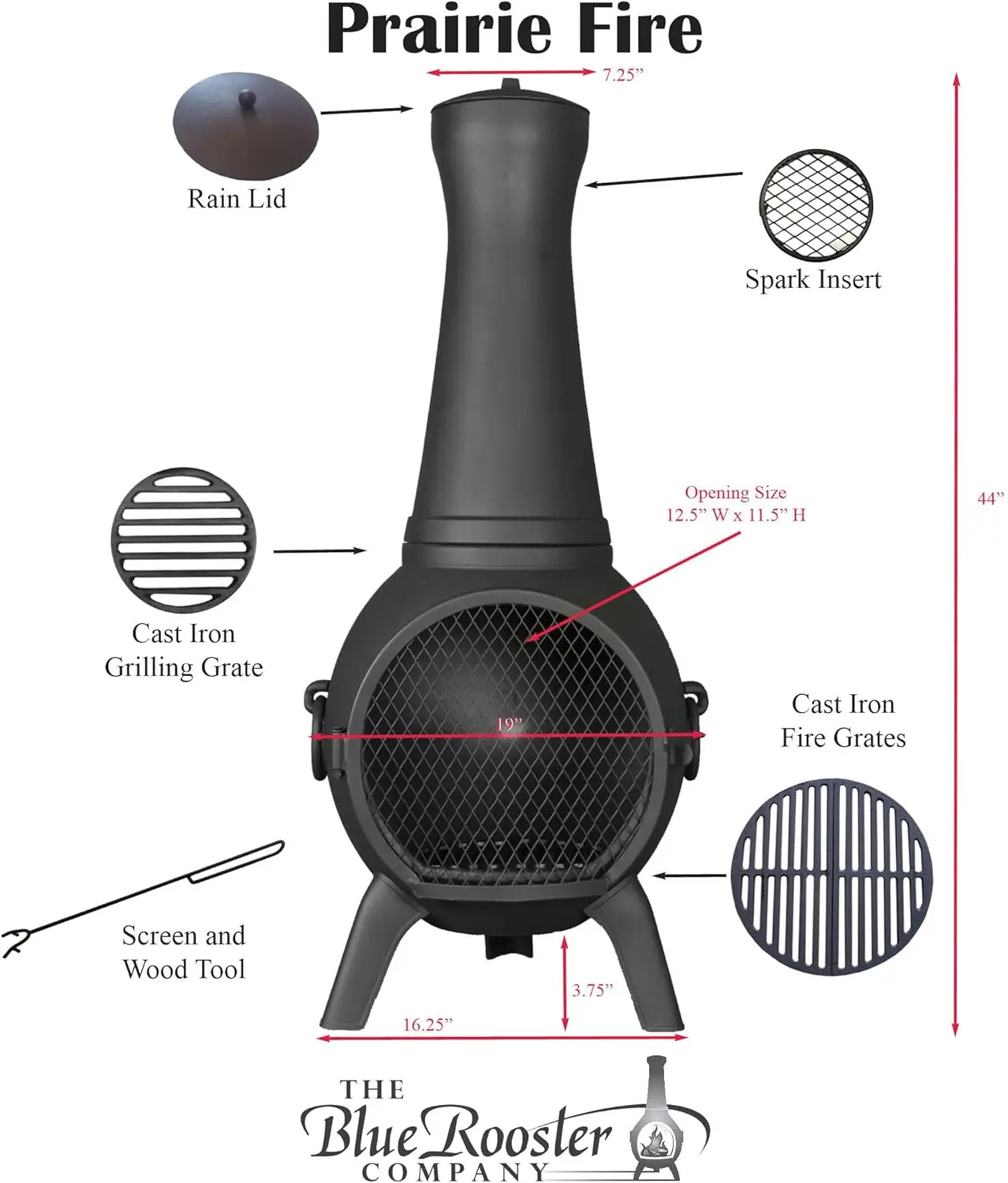 The Prairie Fire chiminea fireplace, just like our other outdoor fireplaces, is a Blue Rooster original design. Engineered for efficient drafting to create a hot burning fire, brighter, and cleaner than any fire pit, burn pit, or box store outdoor fireplace.
