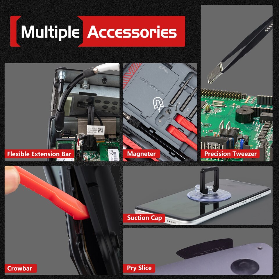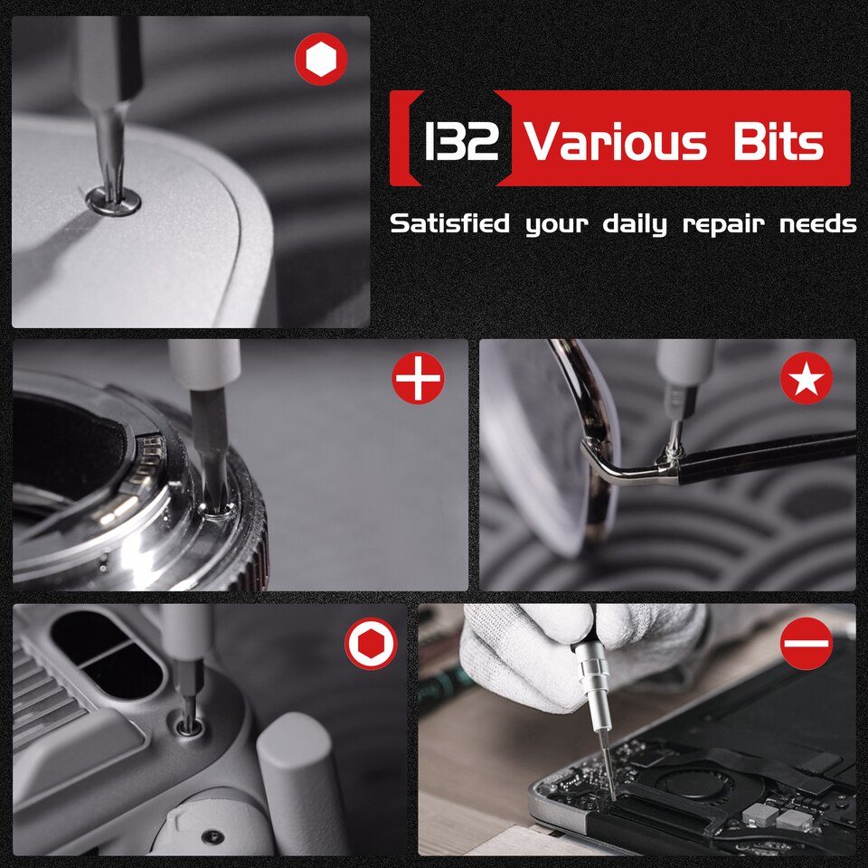【Portable & Organized】With a professional and well-organized storage case, the placement position and the size of the accessories are consistent that stops them from falling out. Additionally, Integrated magnetizer and de-magnetiser and have suction cups, triangles, crowbars, flexible extension rods are all available, worry-free disassembly and assembly, easy storage.