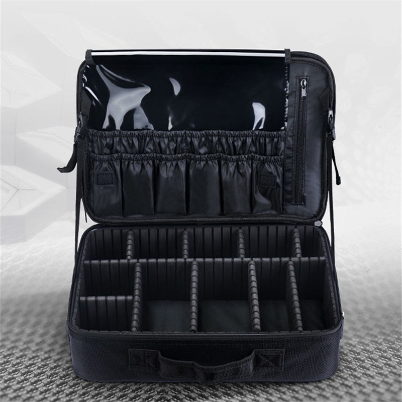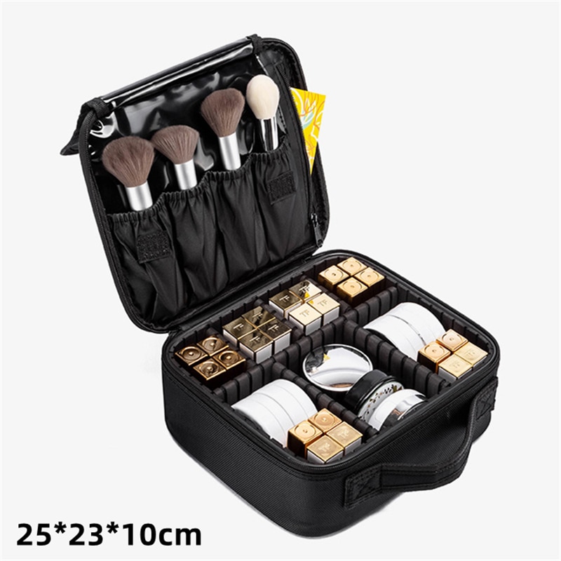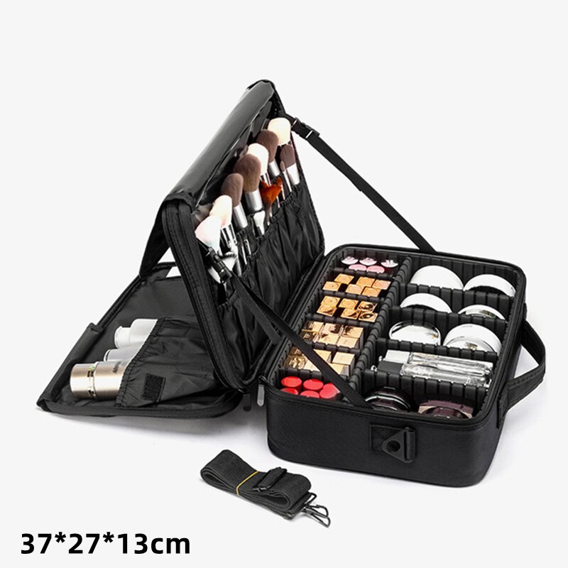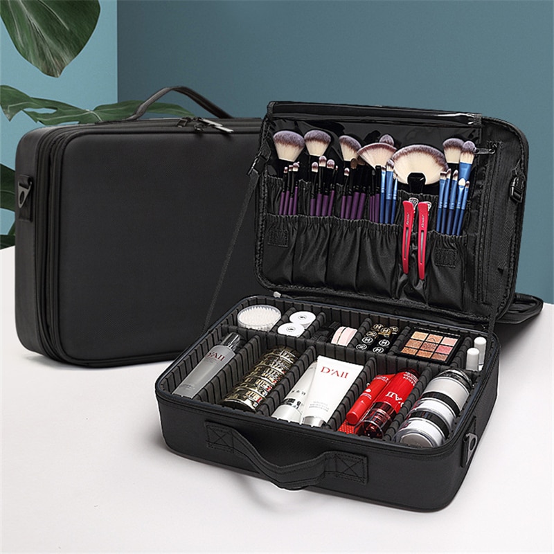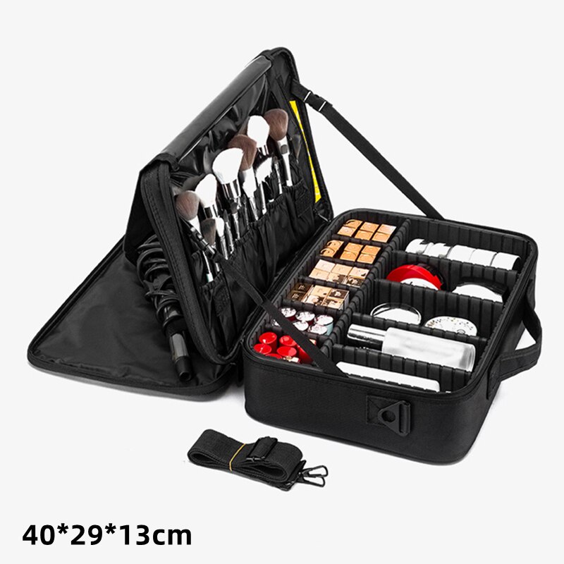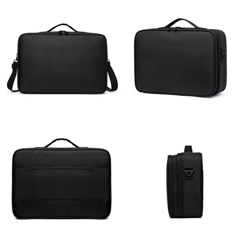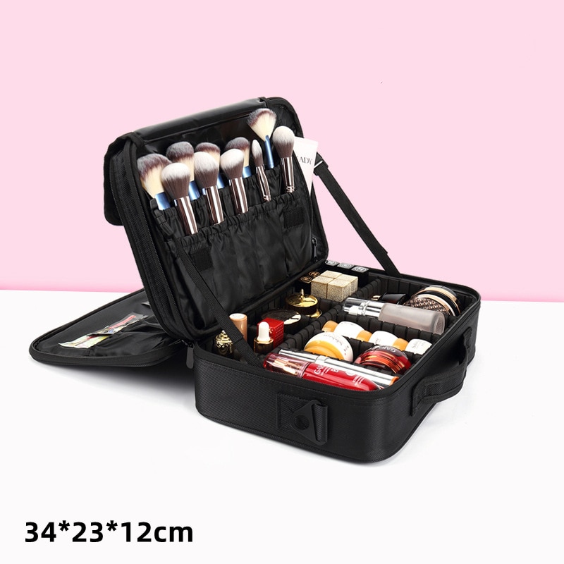 1. Cosmetic Bag: The layered design allows you to store perfume, lotion and skin care products in the lower storage compartments, which have padded but sturdy walls. The top layer serves as a makeup brush pocket.