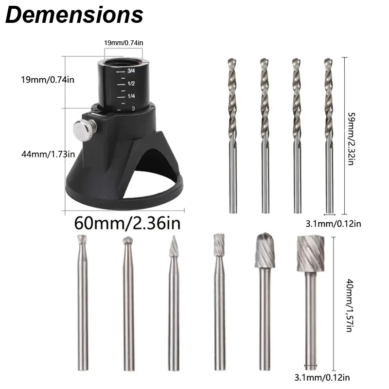 Rotary Multi Tool Cutting Guide Attachment Kit with HSS Router Drill Bits Set