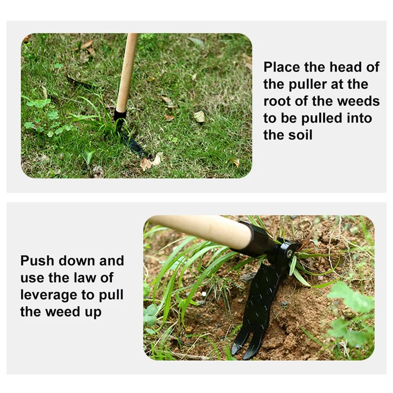 Stand up weed puller is used with the long vertical bamboo handle to prevent bending over to pull weeds. Suitable for all soil types, especially after rain or watering.