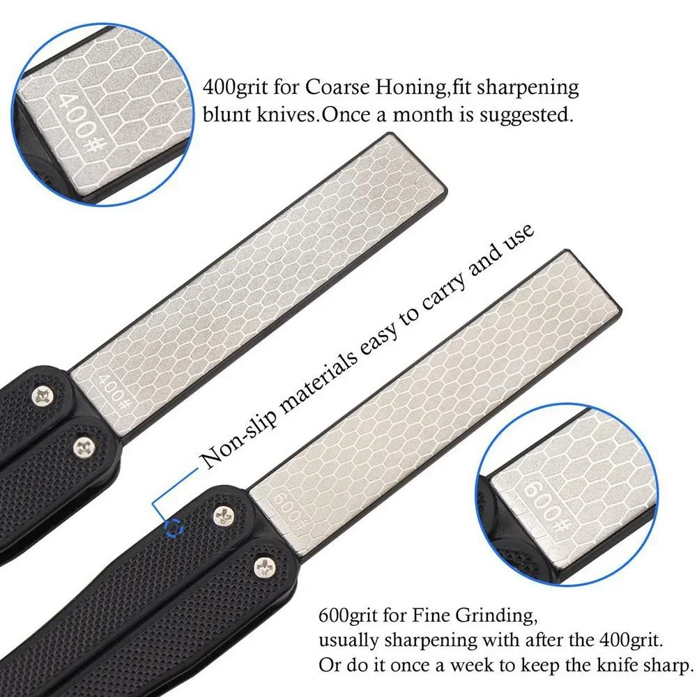 TWO CHOICE: Double sided diamond design for best choice.(400 Grit as coarse sharpen, 600 Grit for fine honing)