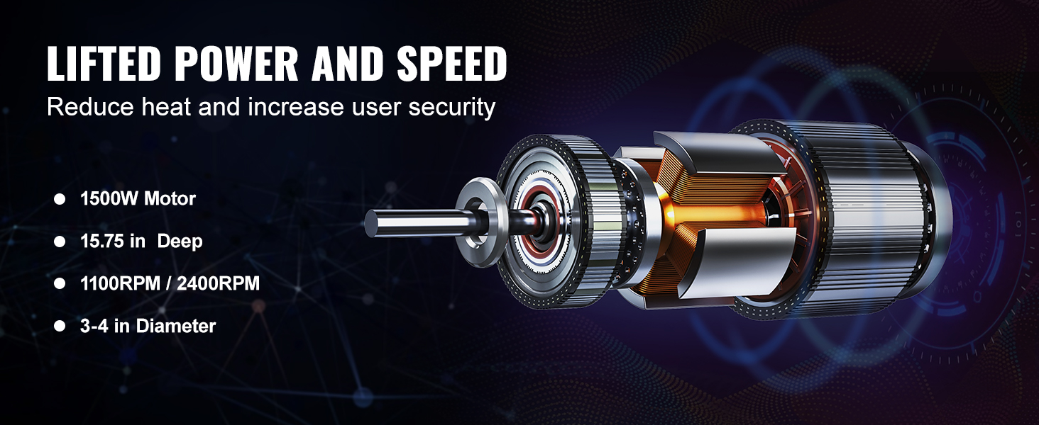 Two Gear Speed: Our 2-speed electric core drill, 1100RPM / 2400RPM, has a convenient gearbox allowing different speeds to match the type of material being drilled and helping control the ideal speed for the job. 1500W strong motor to ensure the machine drilling fierce and consistent work.