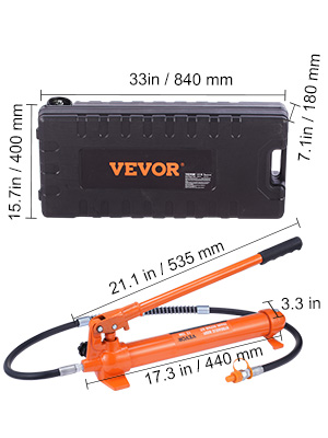 - Perfect for All Your Needs: The portable hydraulic ram kit includes everything you need to complete your repair work! Hydraulic pump, hydraulic ram, 4pcs extension tubes, serrated saddle, rubber head, V-shaped head, wedge head, connector, flat base, hydraulic spreader, spreader ram toe, plunger toe. You will be ready to take on any project without breaking a sweat.
