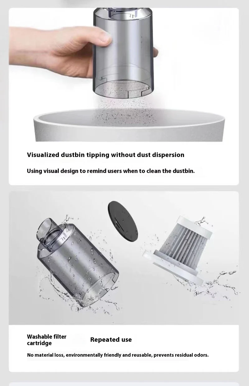 3. USB Charging :The vacuum cleaner can be charged via USB, making it easy to charge anywhere and anytime.