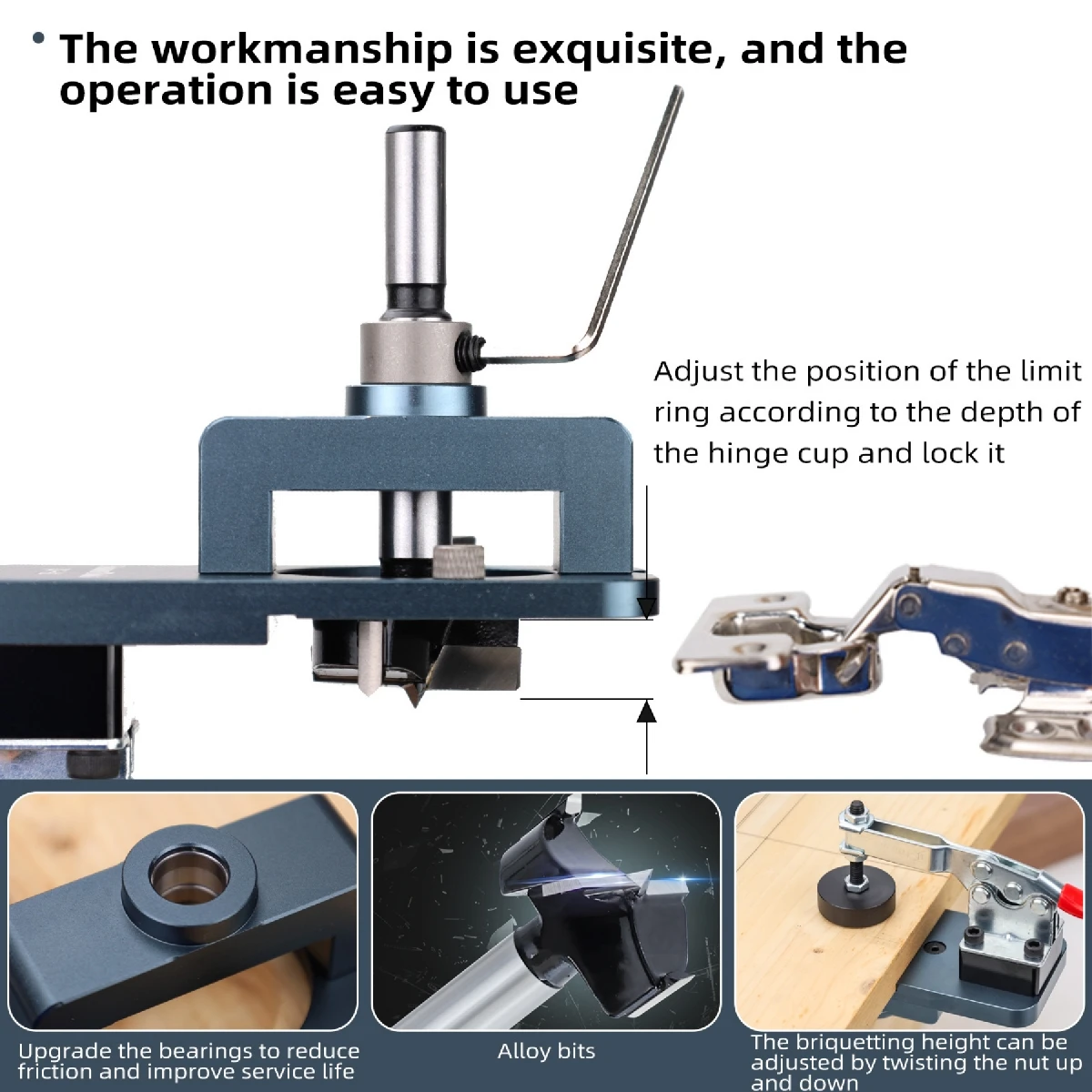 This 35mm hinge opener is suitable for 15 ~ 25mm thick plates, which can be used to install hinges, operate accurately and prevents injuries.